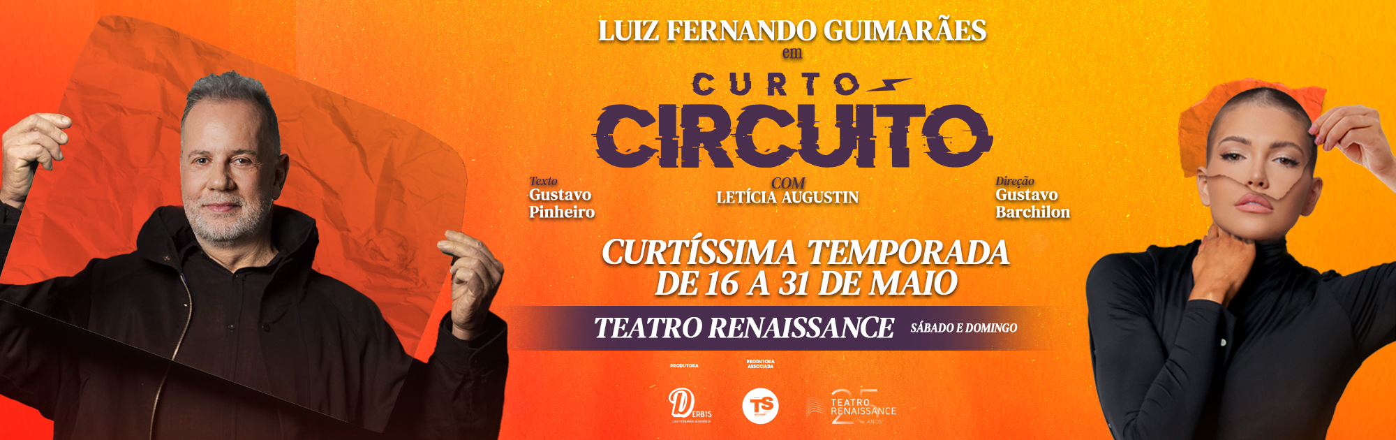 Horários: Sextas 19h30, Sábados 19h e Domingos 17h - A partir de 02/05: Sábados 21h e Domingos 18h30